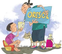 · Sử dụng dung dịch Oresol (ORS) để bù nước (Mỗi gói pha với 1 lít nước chín để nguội, cho người bệnh uống từ từ và không uống phần dư để quá 24 giờ). Nếu không có ORS có thể pha nước muối đường theo tỷ lệ: 1 muỗng cà phê muối - 8 muỗng cà phê đường - 1 lít nước cho người bệnh uống.